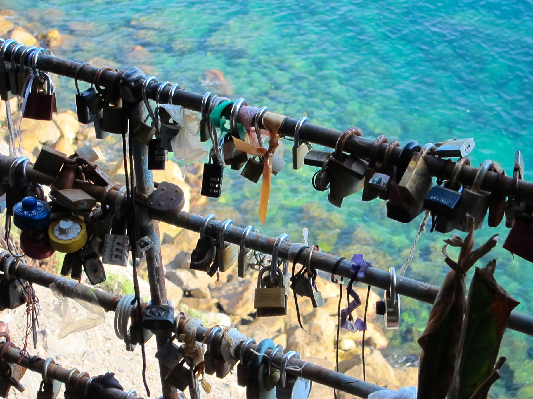 IMG_0544_2 Beautiful locks of love found on the Via dell’Amore in Cinque Terre, a beautiful pathway that hangs on the cliffs of the Liguran coastline and connects the two towns of Riomaggiore and Manarola.  I took this picture in May of 2012.